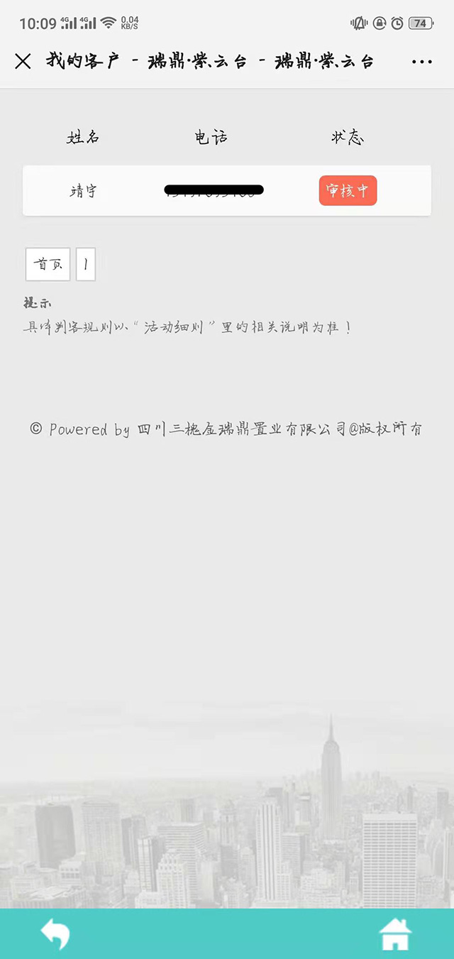 推薦完成之后會自動跳轉到我的客戶界面,在這個界面需要等待管理員審核,虛假信息會被駁回,并且如果多次發布虛假信息賬號會被禁用。